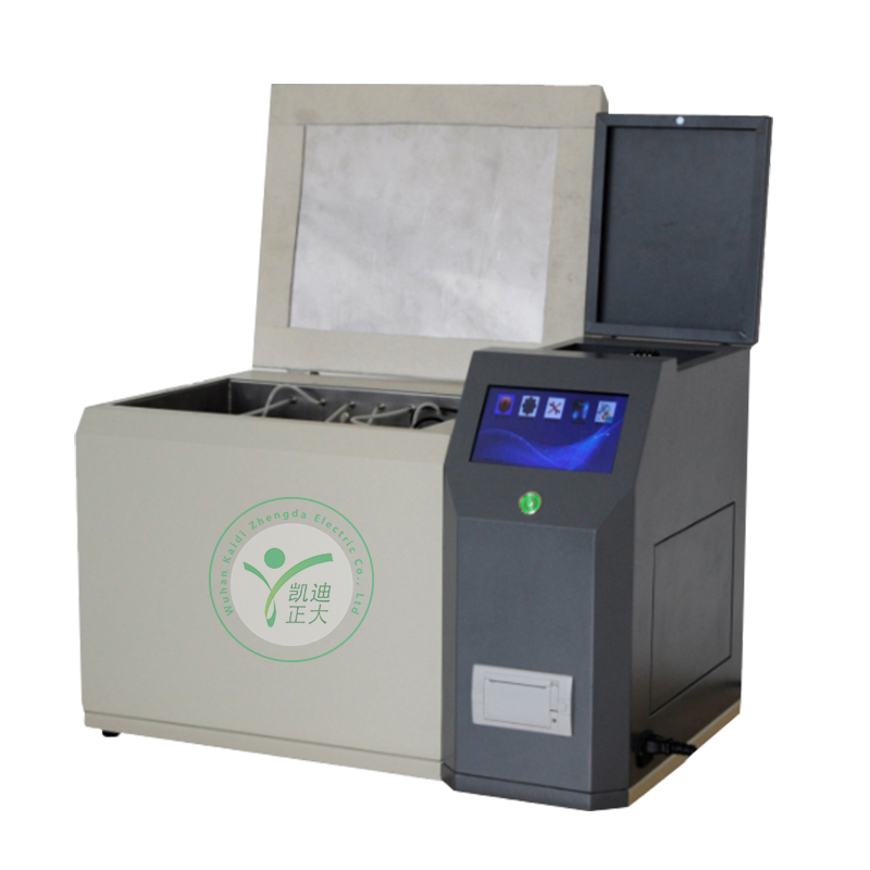 KDSR-303D全自動水溶性酸測試儀(比色法)是根據(jù)中華人民共和國國家標(biāo)準(zhǔn)GB/T7598-2008運(yùn)行中變壓器油水溶性酸測試法及相關(guān)標(biāo)準(zhǔn)設(shè)計制造。采用大屏幕液晶顯示,利用微處理器控制,可以根據(jù)用戶的設(shè)定條件自動完成加熱、恒溫、振蕩、取樣、測試、清洗、打印等功能,可以一次性測量1-6個樣品,縮短了用戶的測試時間。