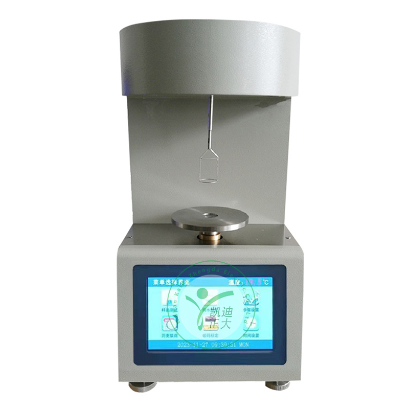 KDZL-807G全自動(dòng)界面張力測(cè)定儀,按照GB6541-86《石油產(chǎn)品油對(duì)水界面張力測(cè)定法》(圓環(huán)法)標(biāo)準(zhǔn)要求,測(cè)量各種液體的表面張力(液—氣相界面)及礦物油與水的界面張力(液—液相界面)。儀器采用彩色觸摸屏顯示,漢字菜單提示的無(wú)標(biāo)識(shí)按鍵,自動(dòng)化程度高,工作可靠,重復(fù)性好,操作簡(jiǎn)單,只需開機(jī)后按菜單提示操作,便可完成全部試驗(yàn)。