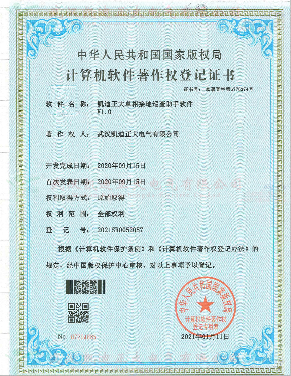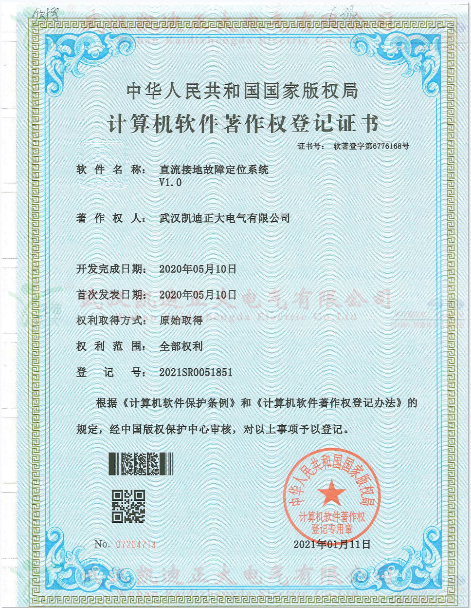 凱迪正大單相接地巡查助手軟件獲得軟件著作權