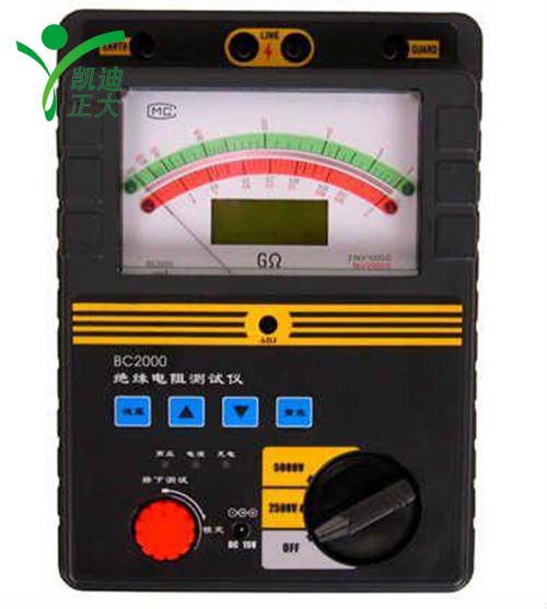 絕緣電阻測試儀又稱數字絕緣電阻測試儀、兆歐表、智能絕緣電阻測試儀等,適于在各種電氣設備的保養、維修、試驗及檢定中作絕緣測試。絕緣電阻測試儀適于在各種電氣設備的保養、維修、試驗及檢定中作絕緣測試。 絕緣阻值分度線均勻清晰、便于準確讀數。 操作簡捷,攜帶方便。 低耗電,用8×1.5V(AA,R6)電池供電,使用時間長。 具有電池容量檢查功能。