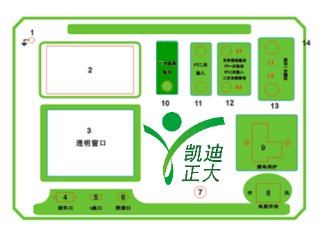 13.CT一次輸入口    14.機箱右側電源輸入,~220V(±10%)