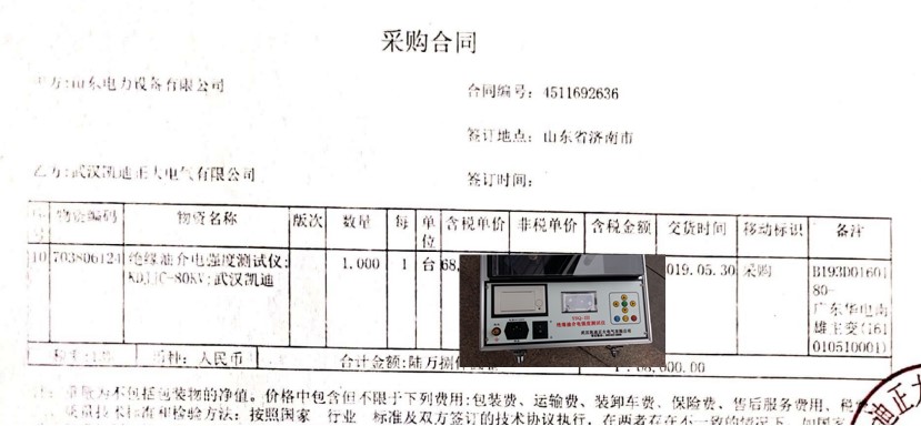中國華電韶關(guān)熱電廠在2017年6月中旬招標采購電氣試驗室設(shè)備一批,我司良好的口碑獲得中國華電廣東華電南雄主變(161010510001) 物資設(shè)備需求,驗收主變性能需求絕緣油介電強度測試儀;KDJJC-80KV武漢凱迪,采購合同編號:4511892636.