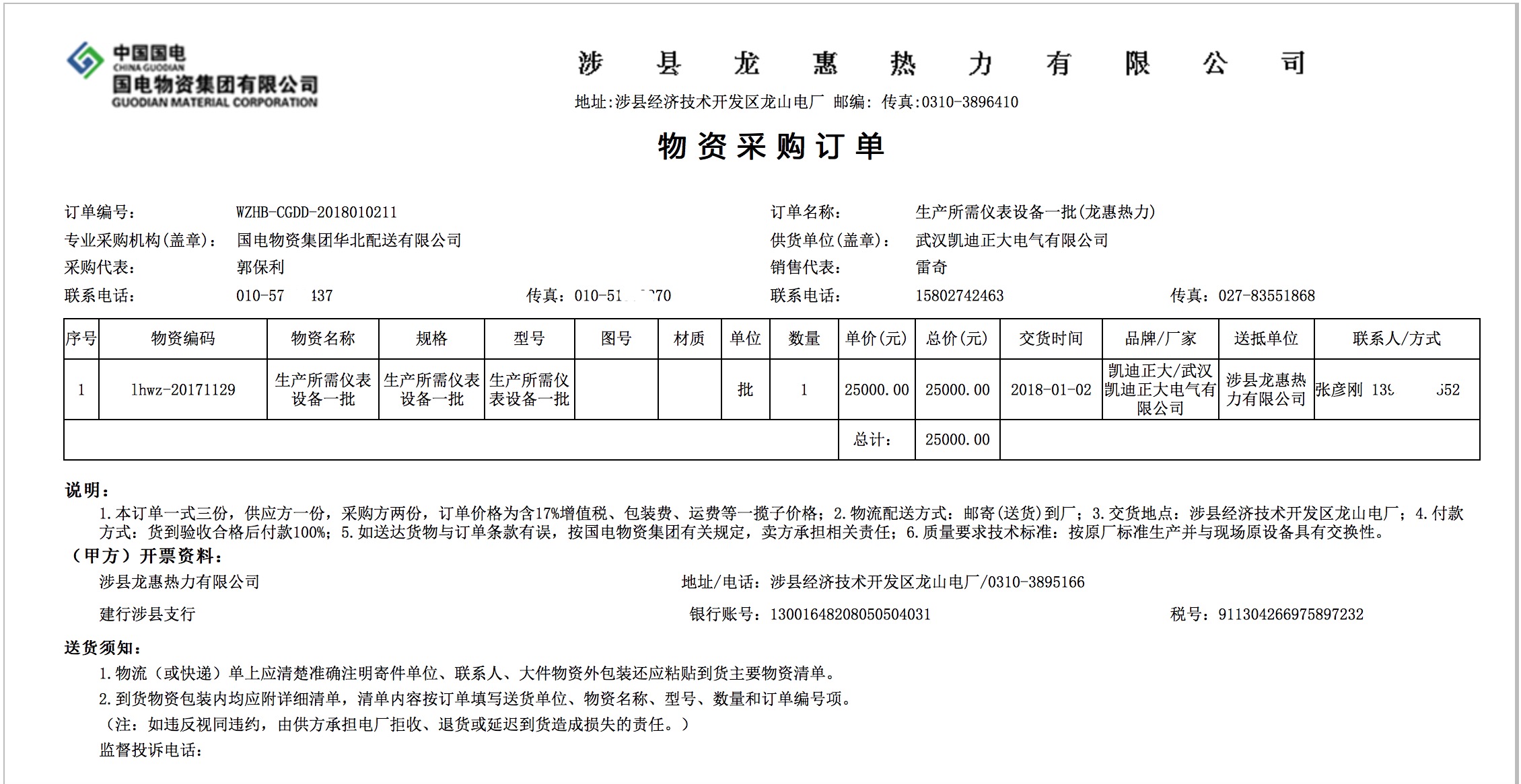 賀我司中標(biāo)中國國電涉縣龍惠熱力電廠儀表設(shè)備項(xiàng)目
