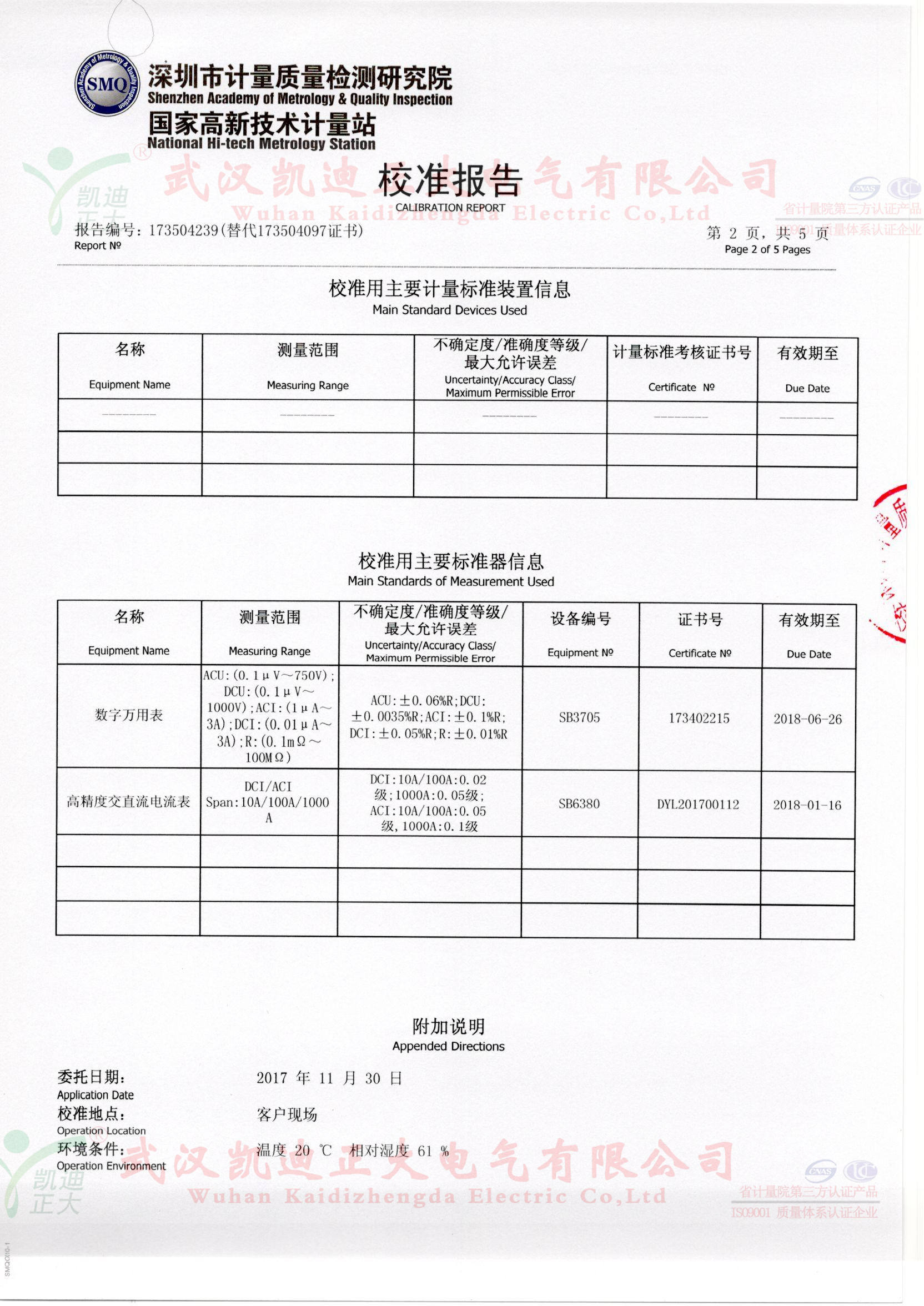 應中廣核遼寧紅沿河核電有限公司的需求,將武漢凱迪正大電氣公司生產的KDZD880(110V300A)智能蓄電池放電儀出具國家高新技術研究院的計量報告后才能使用。校準報告:173504098證書號,出廠編號:KD15042815,資產編號:500056775,校準依據:參考JJF158-2016數字多用表校準規范JJF(軍工)108-2015電池充放電測試儀校準規范。嚴格出具檢定合格報告。
