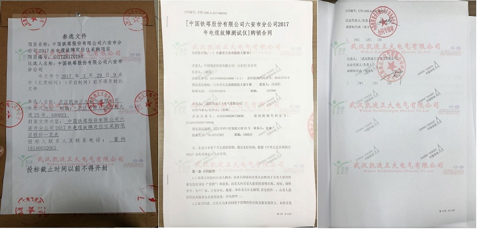 沈工查閱資料后,邀請我司參與《中國鐵塔股份有限公司六安市分公司2017年電纜故障測試儀》詢價采購招標。最終,我司價格高分、產品技術高分、售后服務高分獲得中標人。