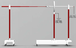 這里以35KV帶接觸電極延長(zhǎng)的驗(yàn)電器為例(注:做啟動(dòng)電壓需配合升壓設(shè)備):首先將帶導(dǎo)軌的試驗(yàn)平車上中間平車(安裝有均壓環(huán))移動(dòng)標(biāo)有a1430mm(紅色帶箭頭)位置,平車上的標(biāo)尺與平臺(tái)上的標(biāo)尺對(duì)齊。然后接好地線包括2平車底座、均壓環(huán)及升壓設(shè)備,將驗(yàn)電器固定在小平車上,同時(shí)將驗(yàn)電器抽出,然后移動(dòng)小平車使得驗(yàn)電器穿過(guò)均壓環(huán),且驗(yàn)電器的金屬頭與均壓球接觸保持即可,將升壓設(shè)備的高壓導(dǎo)線接到均壓球延長(zhǎng)桿上,再接升壓設(shè)備的其他導(dǎo)線,試驗(yàn)人員撤離到安全區(qū)后合上電壓,將升壓設(shè)備均勻加壓知道驗(yàn)電器發(fā)出報(bào)警,馬上停止加壓,此時(shí)記錄下高壓電壓數(shù)值,且比對(duì)數(shù)值是否落在35KV的15%~40%內(nèi)(5.25kv~14kv),是表明驗(yàn)電器啟動(dòng)電壓報(bào)警合格,否則此驗(yàn)電器不合格。其它規(guī)格的驗(yàn)電器啟動(dòng)電壓也是如此,通過(guò)移動(dòng)均壓環(huán)平車到指定位置即可。