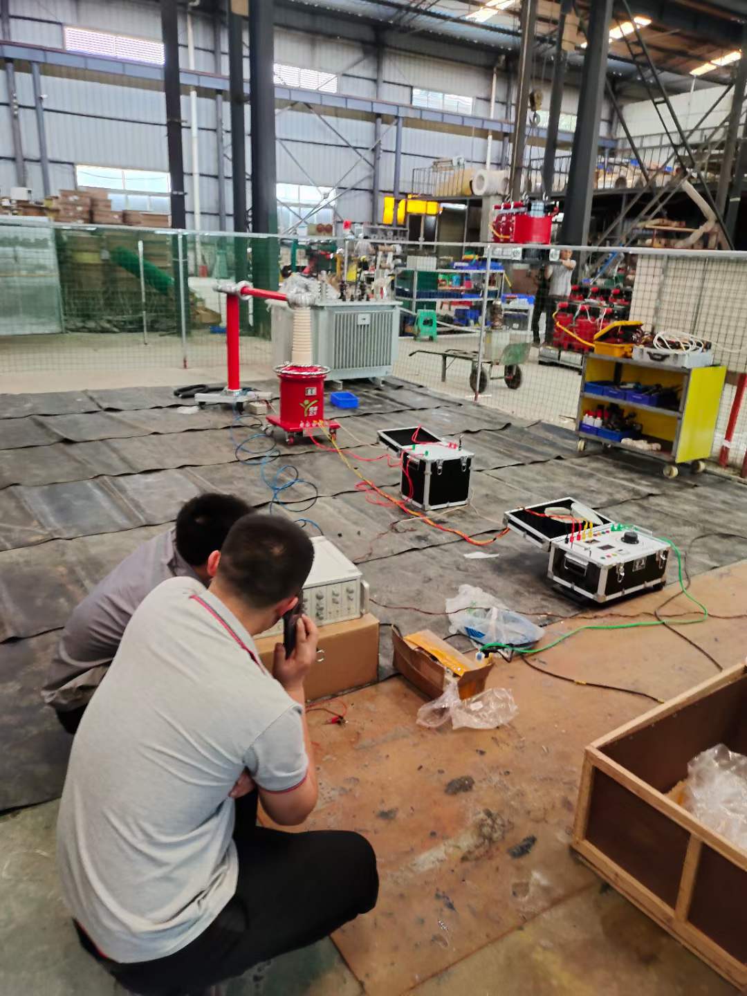 2022年6月6日,端午節剛過,凱迪正大就收到了重慶客戶的邀請,需要幫忙指導一下在本公司購買的一批試驗設備的操作方法。收到通知后,凱迪正大技術總工王工立即前往重慶。本次王工負責指導調試的設備包括KD610絕緣油介質損耗測試儀、KDJF-2000無局放耐壓試驗裝置、KDBT2000變壓器綜合試驗臺。