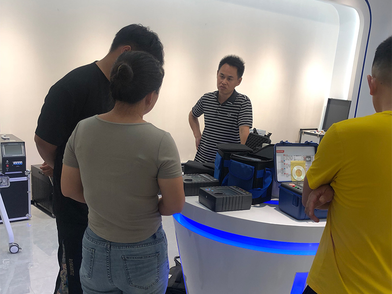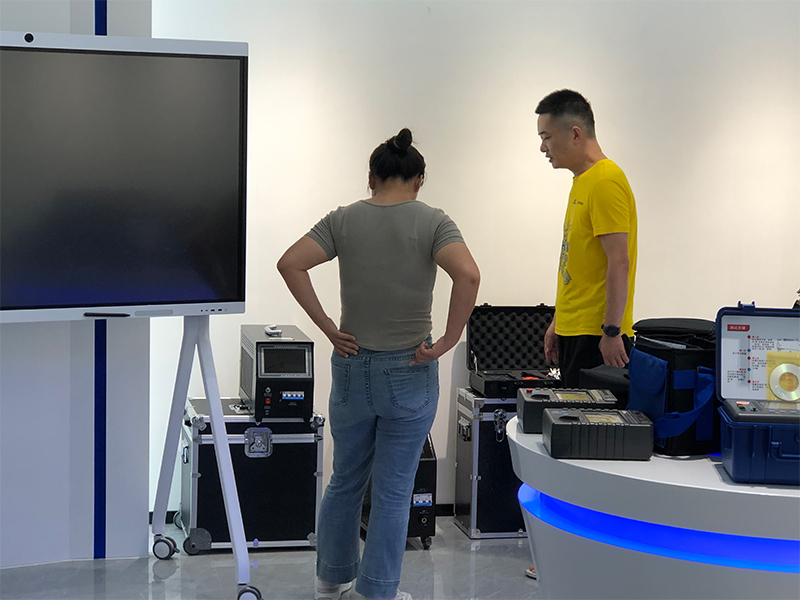 在我公司趙總與王工的陪同下,安徽某電力公司代表首先參觀了寬敞明亮的設(shè)備展廳。這里陳列著各類電力檢測設(shè)備,趙總與王工對(duì)展廳陳列的設(shè)備做了大致的講解。并對(duì)三相繼電保護(hù)測試儀、變壓器容量測試儀及變頻抗干擾介質(zhì)損耗測試儀進(jìn)行了細(xì)致介紹。